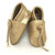 Deze baby slofjes zijn handgemaakt van zacht leer.